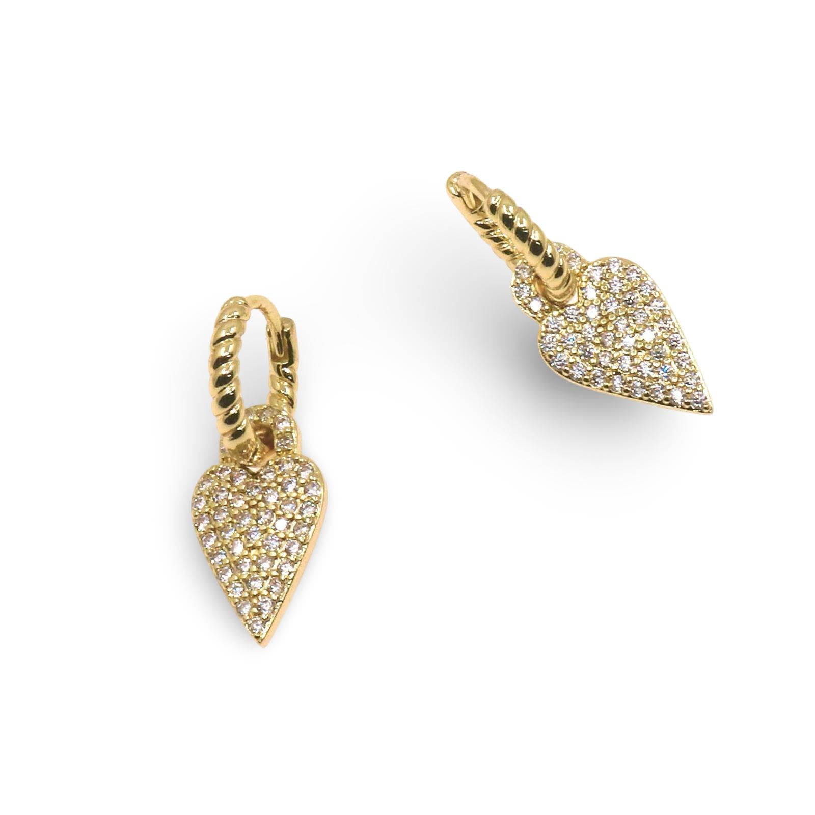 Mini Huggie With Zirconia Heart Elevate your ear styling with these sophisticated mini huggie earrings, crafted from durable gold-filled metal. Each piece features a sparkling cubic zirconia heart that catches light beautifully, delivering luxury appeal at an accessible price point. The compact huggie design hugs the earlobe comfortably, making these versatile enough for daily wear or special occasions. Perfect for those seeking timeless elegance with contemporary flair.